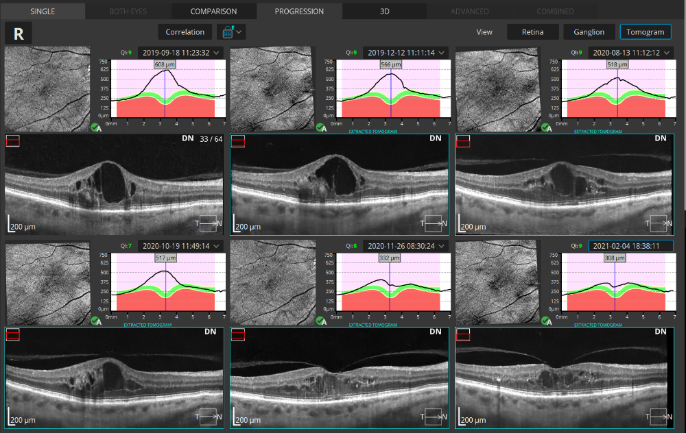 • Associez une seule photo du fond d'œil à plusieurs scans OCT.